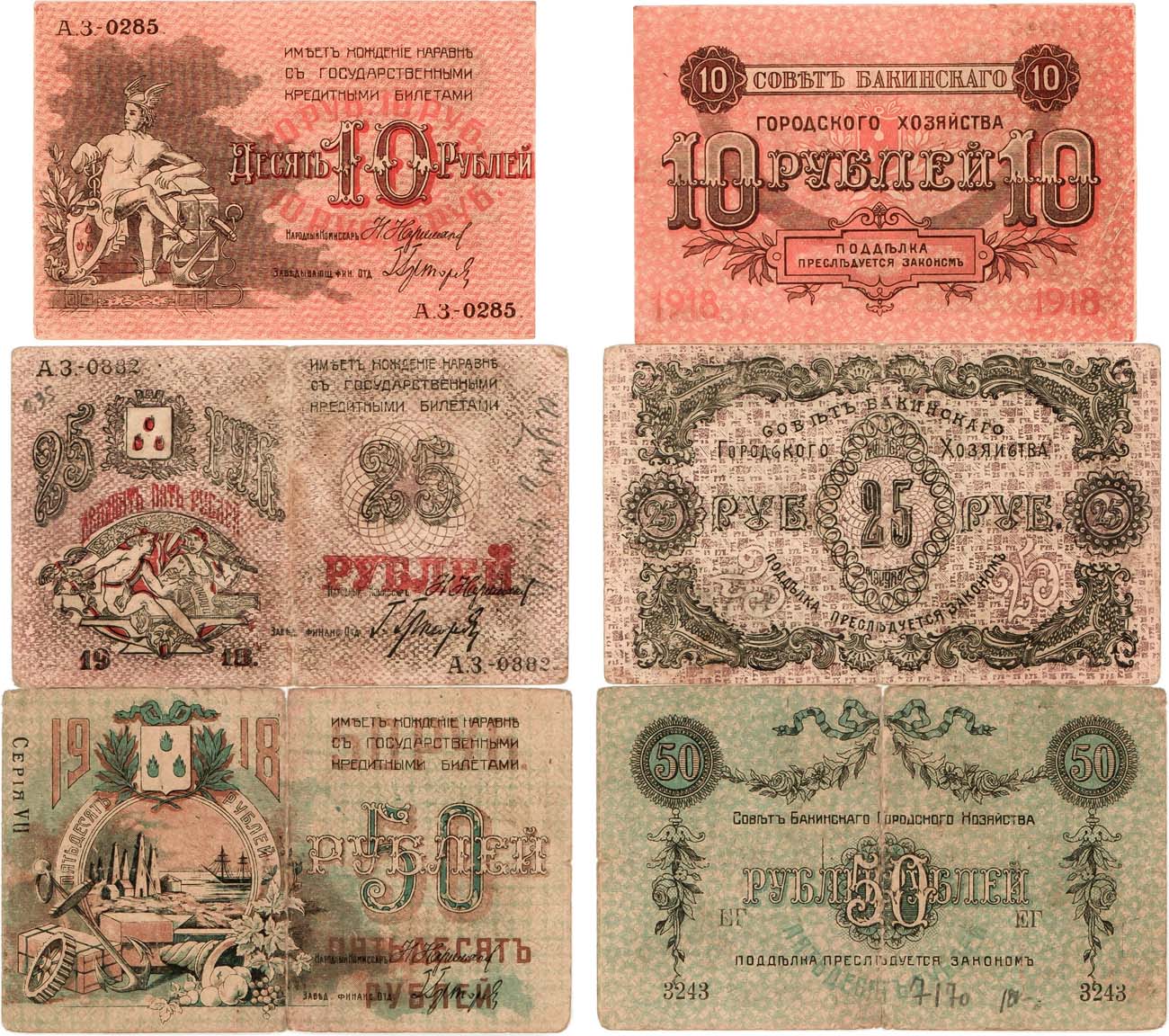 10 рублей 1918 года. Без серии. 25 рублей 1918 года. 50 рублей 1918 года. F/XF.