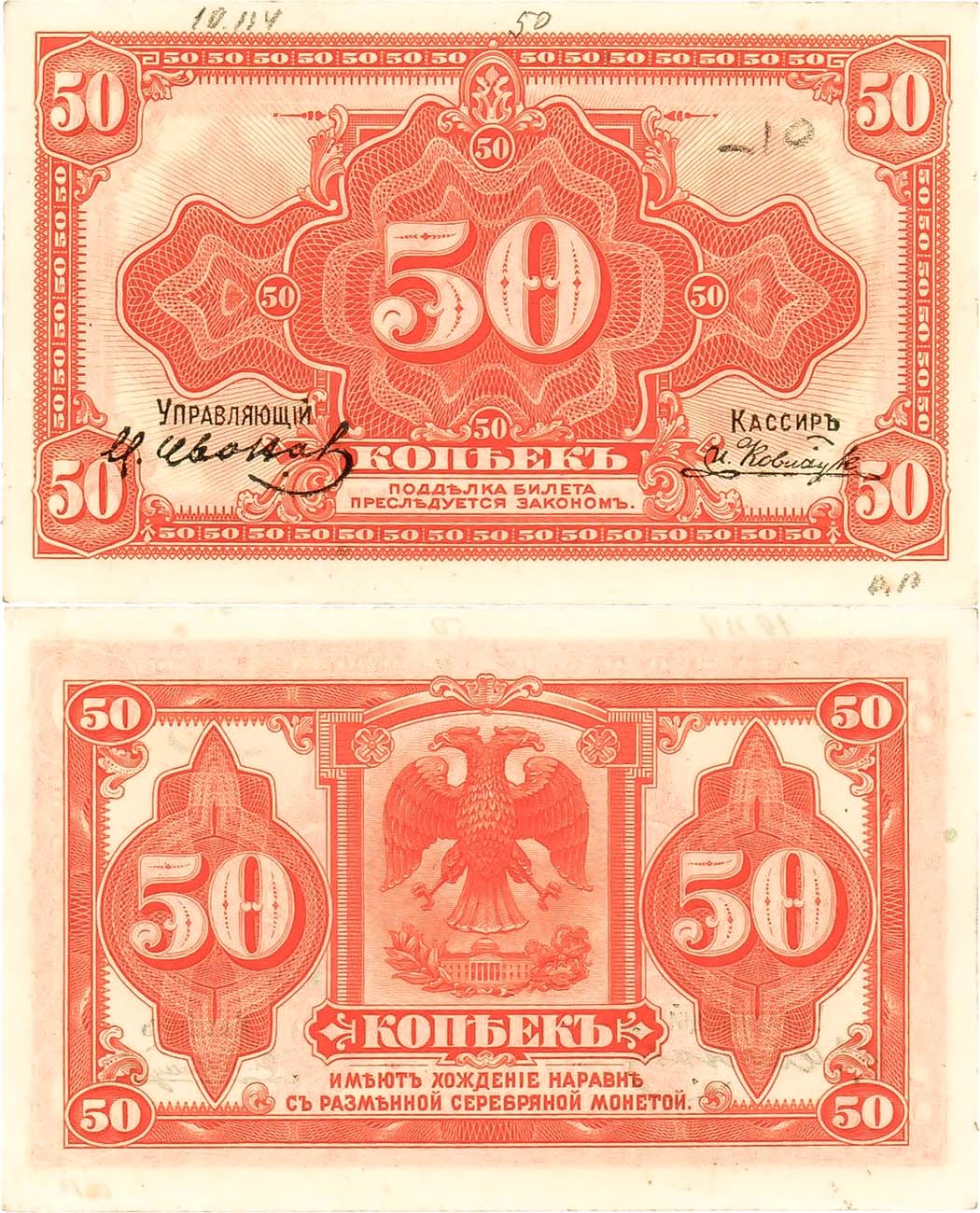 Временное правительство Дальнего Востока. Разменный знак. 50 копеек (1920) года. Две подписи.