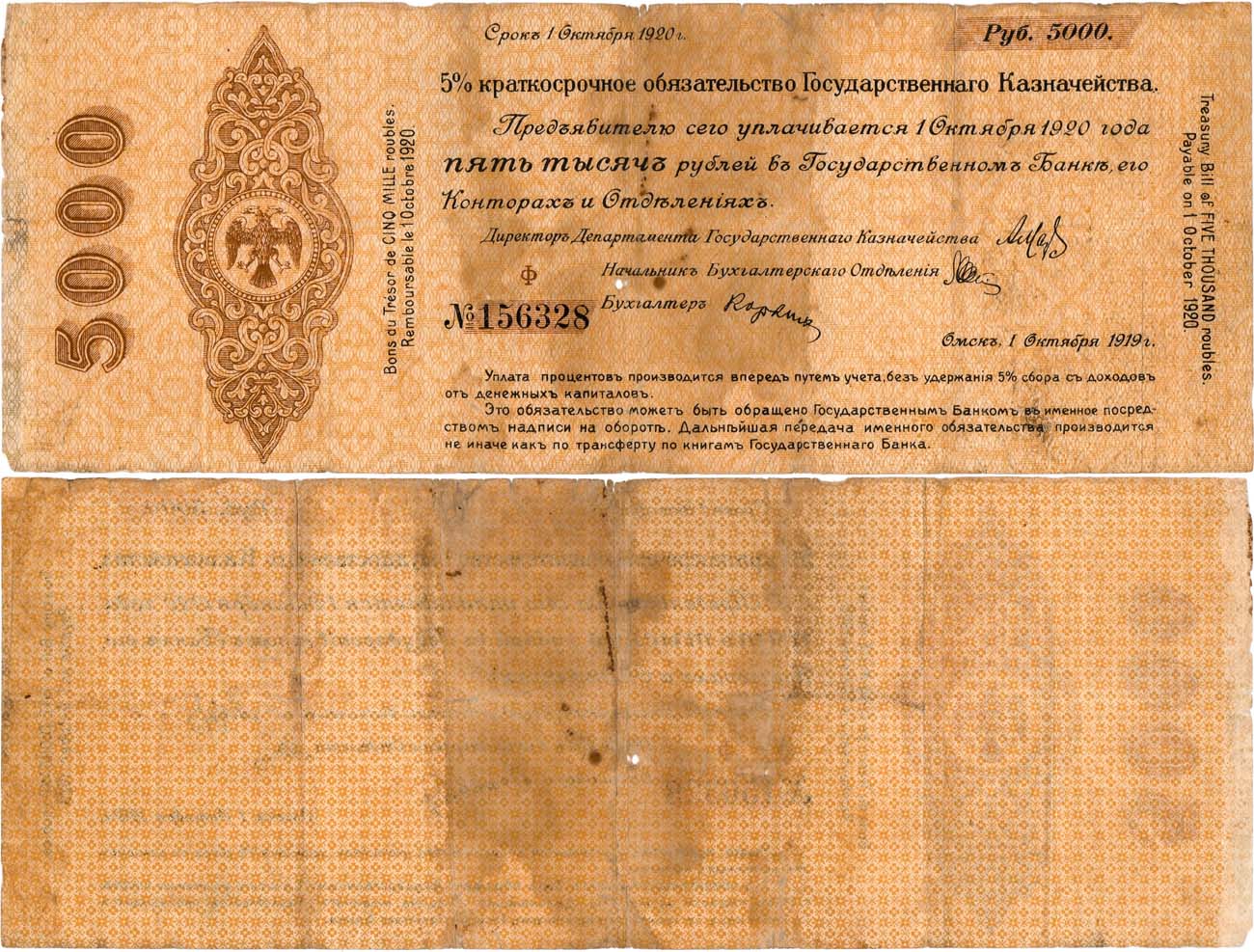 Серия Ф №156328. Срок погашения 1 октября 1920 года. Кардаков XI.50.8. Истомин Е340.4.1a. VF-.