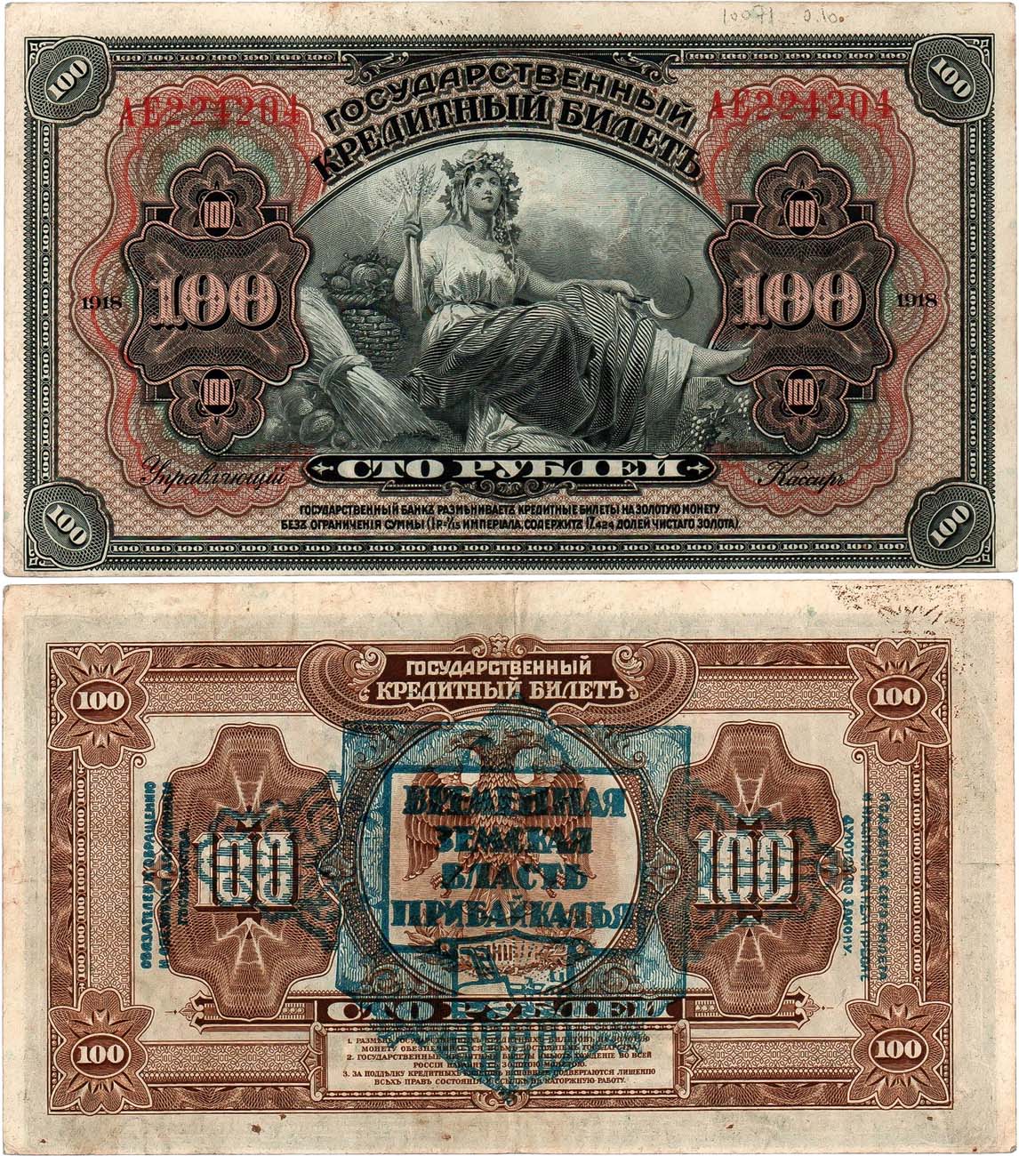В казначействе Верхнеудинска хранились доставленные из Владивостока по указанию Министерства Финансов правительства Колчака изготовленные в США кредитные билеты 25 и 100 рублей образца 1918 года. Земская Управа, начиная с февраля 1920 года, выпустила в обращение эти билеты, нанеся на их оборотную сторону надпечатку.