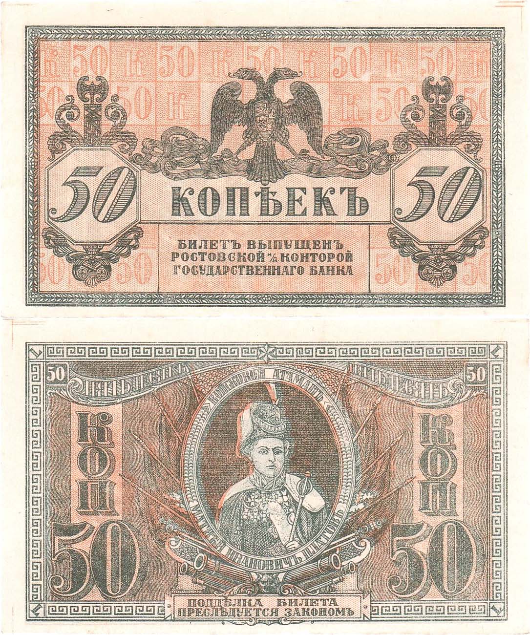 Бумага белая. С желтыми штрихами на полях. Новороссийск? Печать черной краской. Рябченко №2945р (2д). UNC.