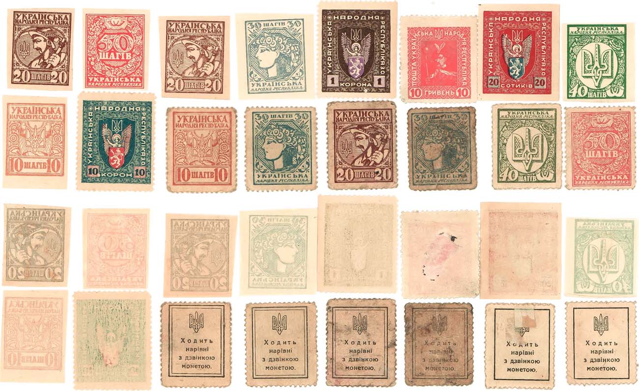 Марки-деньги. Гетман Скоропадский. 6 мая - 14 декабря 1918 г.10 шагов (1918) года. Марки-деньги. Гетман Скоропадский. 6 мая - 14 декабря 1918 г.20 шагов (1918) года. Марки-деньги. Гетман Скоропадский. 6 мая - 14 декабря 1918 г. Ультрамарин. 30 шагов (1918) года. Марки-деньги. Гетман Скоропадский. 6 мая - 14 декабря 1918 г. Ультрамарин. 30 шагов (1918) года. Марки-деньги. Гетман Скоропадский. 6 мая - 14 декабря 1918 г. Ультрамарин. 40 шагов (1918) года. Марки-деньги. Гетман Скоропадский. 6 мая - 14 декабря 1918 г. Ультрамарин. 50 шагов (1918) года. Марки. (1918 г). Номинал: 10, 20, 20, 30, 40, 50 шагов (1918) года. Односторонние отпечатки на тонкой бумаге. УНР. Почтовая марка. Номинал 10 гривен (1918 ) года. УНР. Почтовая марка. Номинал 1 корона (1918) года. УНР. Почтовая марка. Номинал 10 корон (1918) года. УНР. Почтовая марка. Номинал 20 сотиков (1918) года. XF-/UNC.