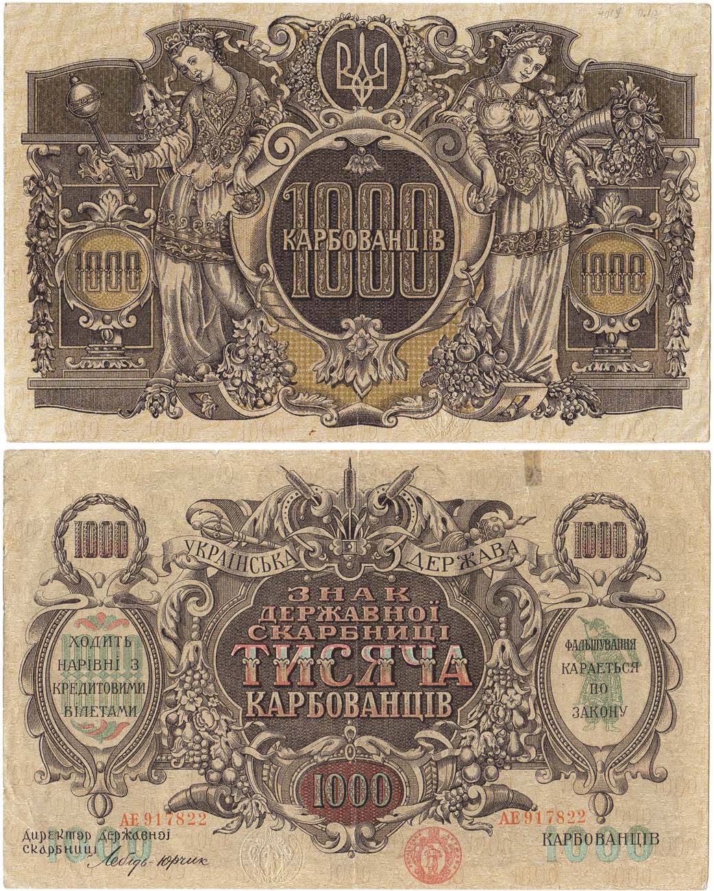 Серия АЕ №917822. IV выпуск. Без водяных знаков. С фирнисовой сеткой. С литерой W. Кардаков V.1.25а. Pick 35б. XF.