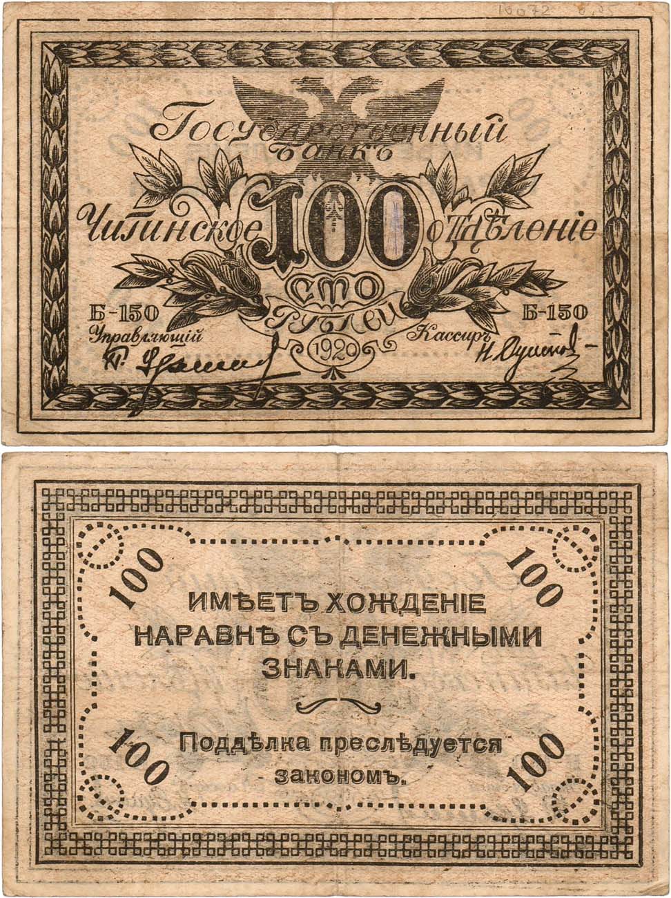 Серия Б-150. Рамка на оборотной стороне из кубиков. Подписи: Управляющий - П.Ф. Веремьев, Кассир - Н.И. Дулепов. Водяной знак "сетчатка". Типография-Экспедиция Заготовления Денежных Знаков (Чита). Кардаков XI.9.2а. Истомин 335.1.1. VF/XF.