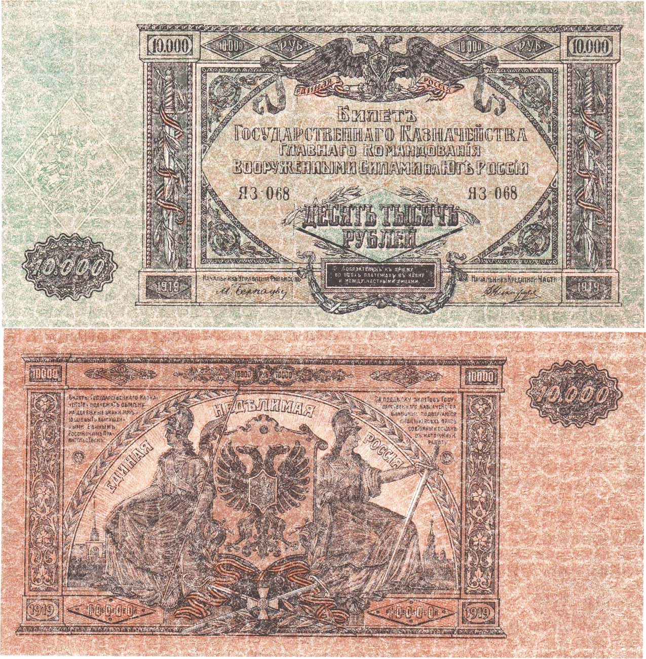 Серия ЯЗ-068. Водяной знак мозаика. Выпуск Феодосия 1920 год. Рябченко №3032р (2д). UNC.