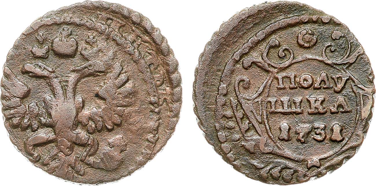Полушки Анны Иоанновны, перечеканенные из денег Петра I встречается чрезвычайно редко.