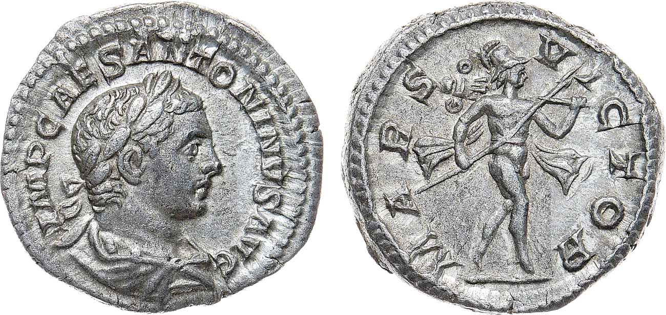 Серебро. 3,5г. Рим. Аверс: "IMP CAES ANTONINVS AVG" драпированный бюст императора в лавровом венке вправо. Реверс: "MARS VICTOR" Марс движется вправо, держа в правой руке копьё, а на левом плече трофей. BMC 112. Cohen 109. RIC 121. Thirion 78. XF/AU.