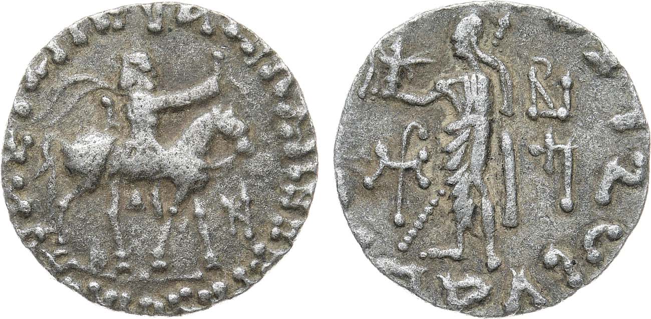 Серебро. 9,37г. Аверс: царь на коне вправо, впереди монограмма "f". Реверс: бог Зевс стоит влево с орлом на правой руке и скипетром в левой, монограммы в левом и правом полях. VF/XF-.