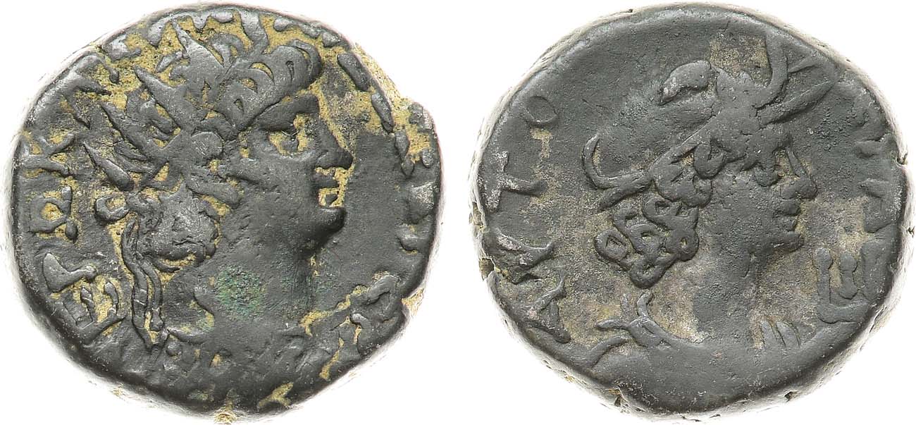 Биллон. 13,45г. Александрия. Аверс: бюст Нерона вправо в эгиде "ΝΕΡΩ ΚΛΑY ΚΑΙΣ ΣΕΒ ΓΕΡ". Реверс: "AYTO KPA". бюст Александрии вправо, в головном уборе из слоновьей кожи. Emmett 109.12. K&G 14.88. RPC I 5289. F/VF.