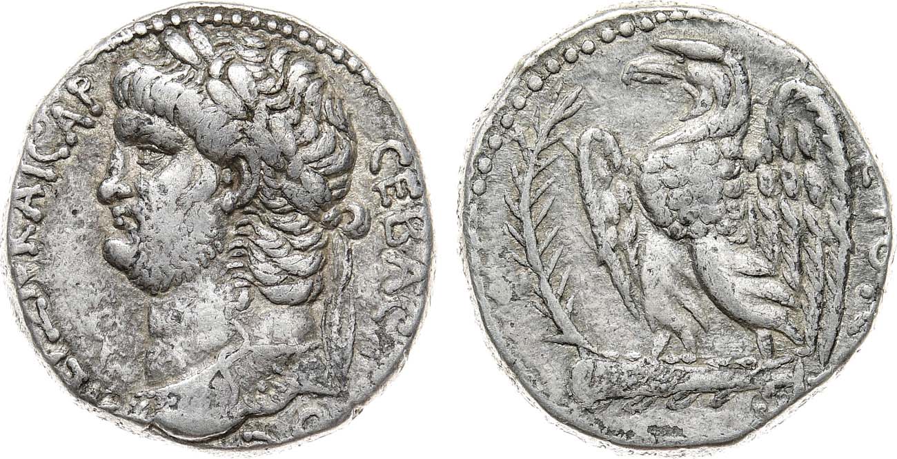 Серебро. 14,69г. Антиохия-на-Оронте. Аверс: бюст императора влево. Реверс: орёл стоящий на палице влево, слева пальмовая ветвь. VF/XF.