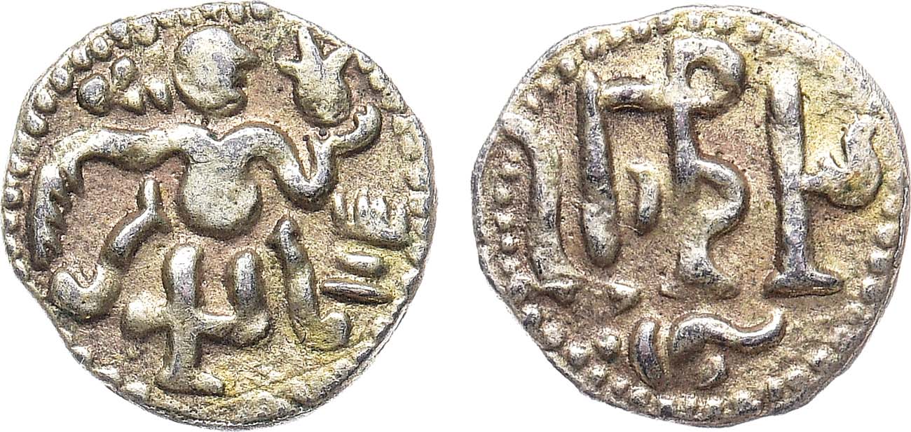 Золото. 1,09г. Аверс: король держит лотос в левой руке над алтарём. Реверс: надпись на нагари. VF/XF.