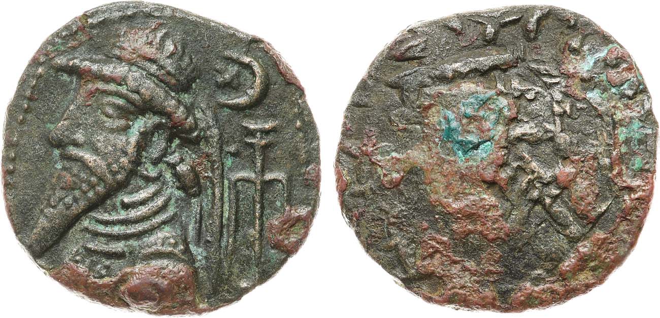 Биллон. 14,88г. Аверс: бюст царя в короне влево, справа в поле полумесяц со звездой. Реверс: "грубый" портрет влево с подражанием греческой легенде. VF/XF.