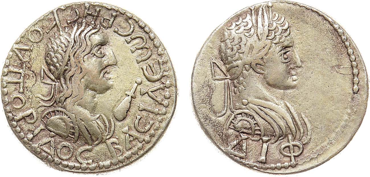 Золото. 7,17г. Пантикапей. Аверс: "ΒΑCΙΛΕωC ΡΗСΚΟΥΠΟΡΙΔΟС". Бюст царя вправо, справа "палица". Реверс: бюст императора вправо, год ΔΙΦ (514 г. б. э.). Анохина В.А. (1986 г.)634а. Анохина В.А. (2011 г.)1929. MacDonald D.557/3. XF/AU.
