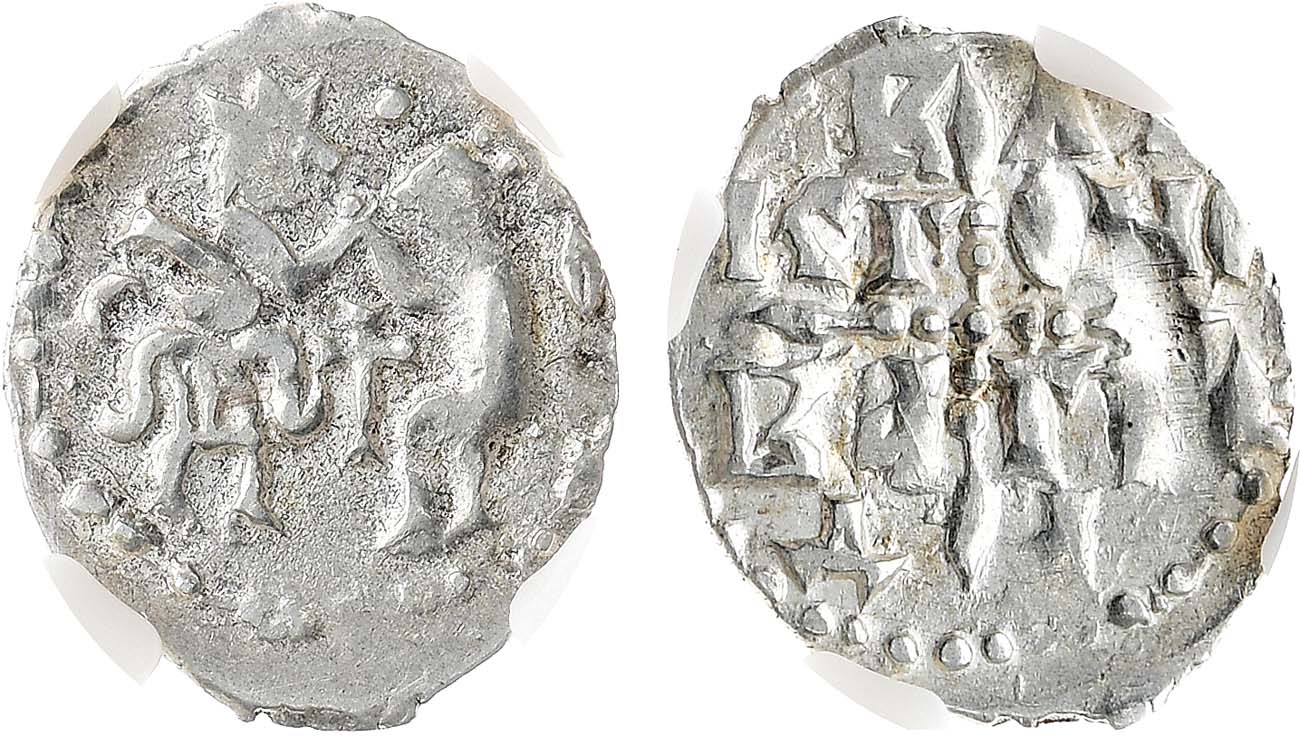 Серебро. Аверс: русская легенда в кресте. Реверс: сцена оммажа, слева князь с мечом сидит, обращён вправо. Знаки на поле реверса: в центре - крест, справа - литера "С", слева - литера "О"; вверху - точка. ГП2 7588C (R-VII). MS 60.