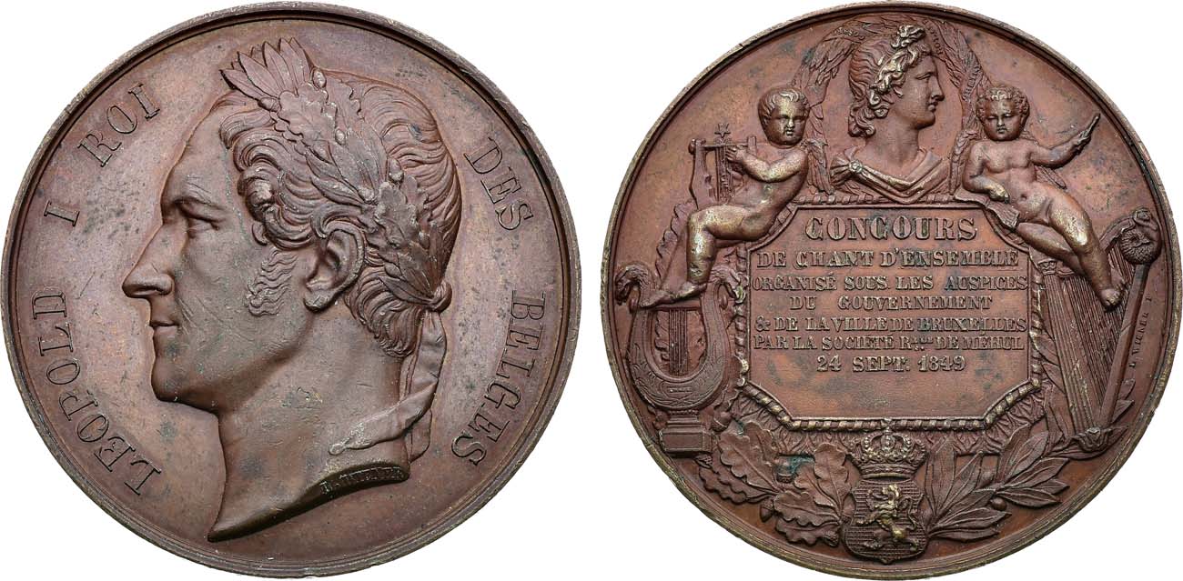 Бронза. 56,37г. Диаметр 50 мм. Брюссель. Медальер Л. Винер (на аверсе в обрезе портрета "L. WIENER"). Гурт: гравировка "132". AU/UNC.
