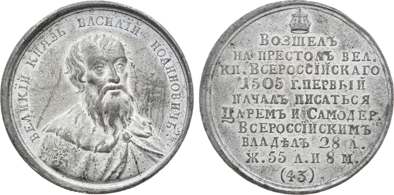Свинцово-оловянный сплав. 20,18г. Диаметр 38,5 мм. Санкт-Петербургский монетный двор. Из исторической серии медалей, №43. Медальер И.Б. Гасс (аверс: справа у окружности по краю: "I•B•G•"). Смирнов 43. Дьяков 1646.1. AU-.