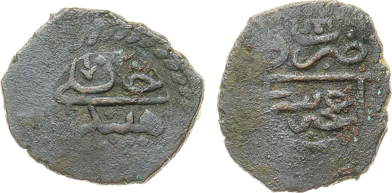 Биллон. 1,47г. Бахчисарайский монетный двор. Аверс: "хан-хин гирей-ша"; стандартное написание слова "гирей". Реверс: тамга вверху; над "ба" - год правления. Сариев 207(R). AU.