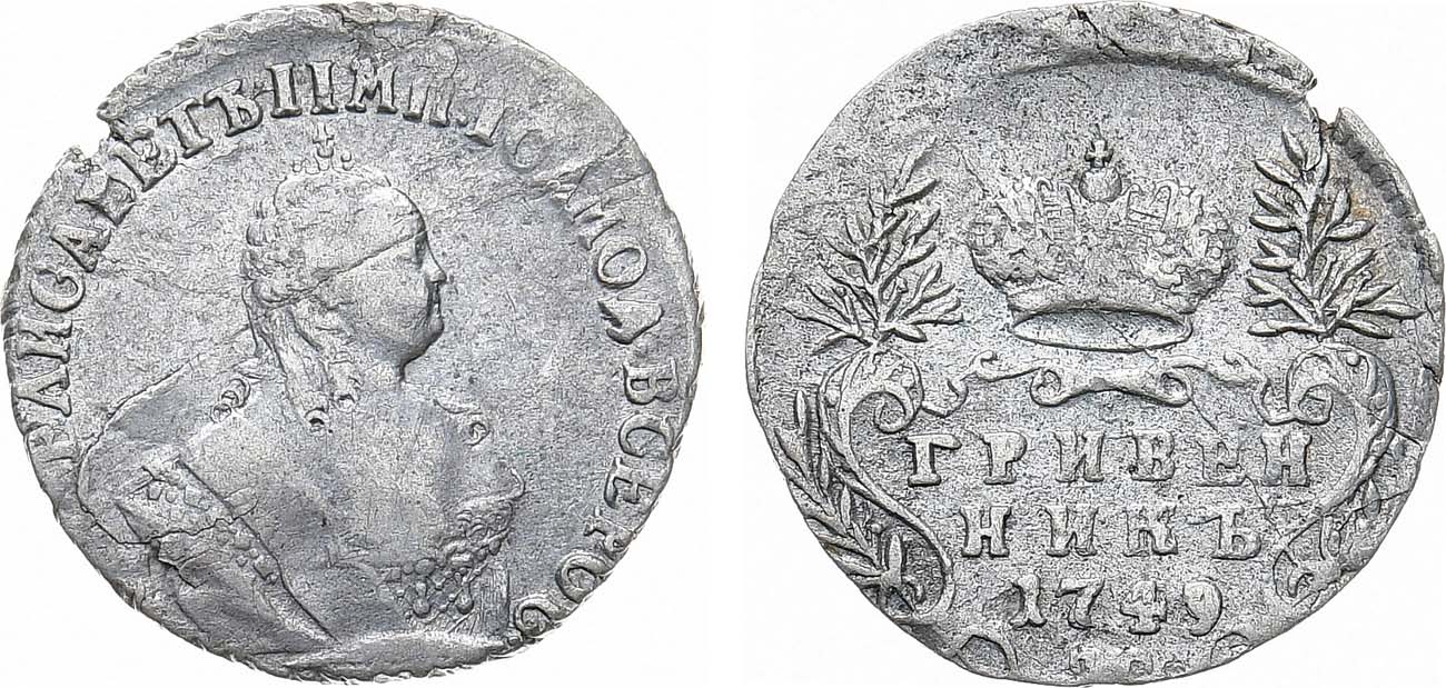 Гривенник 1749 года – одна из наиболее редких монет данного номинала всего периода правления императрицы Елизаветы Петровны.