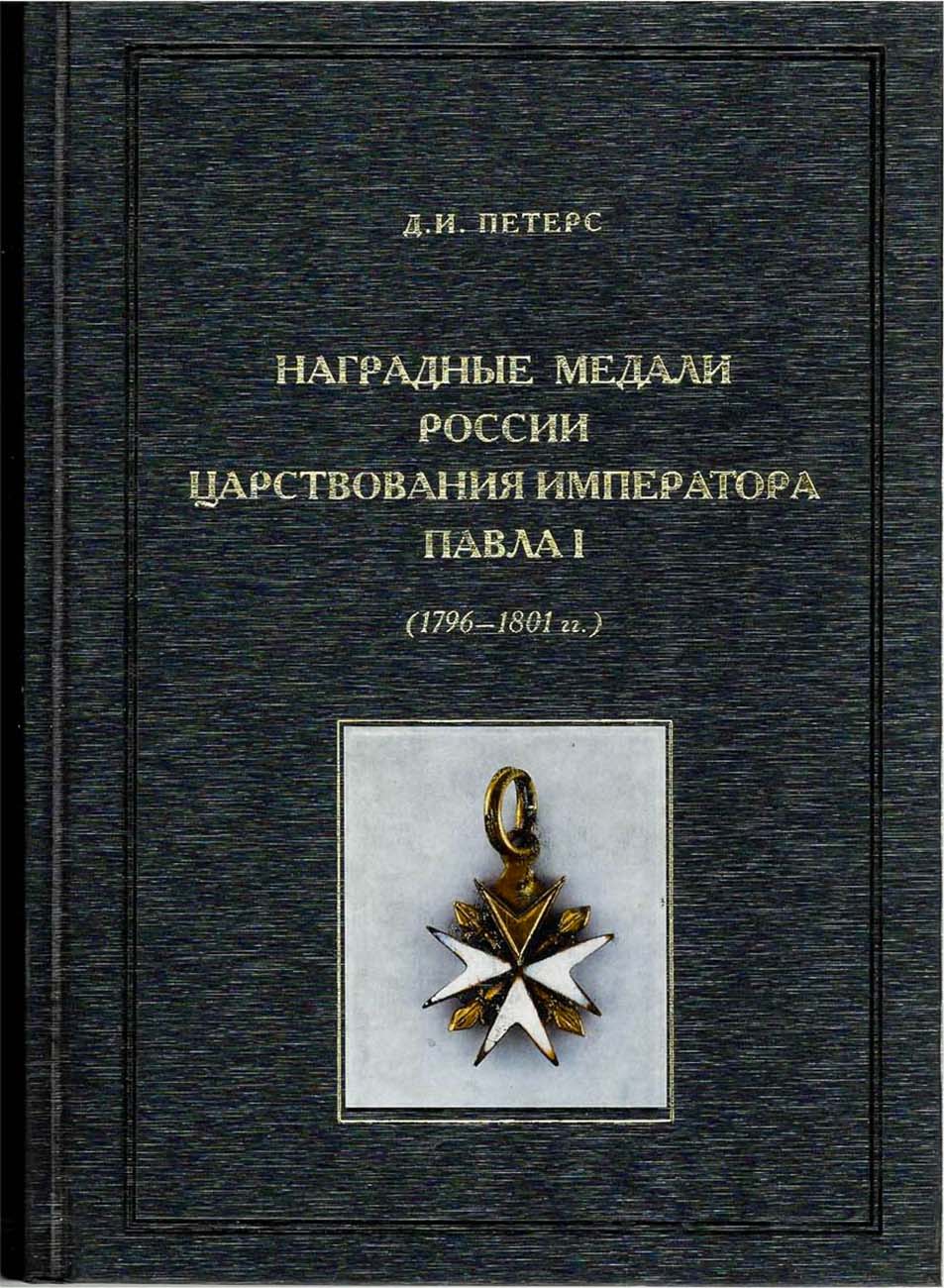 Москва, 2009 г. 397 стр. Тираж 300 экз. В монографии, на основе изучения многочисленных ранее неизвестных архивных источников, рассказывается об учреждении, изготовлении и выдаче наградных (для ношения на шее и на груди на орденских лентах) медалей и знаков отличия орденов Российской империи правления Павла I. Описано 30 наград; приводятся сведения о более 300 пожалованных.