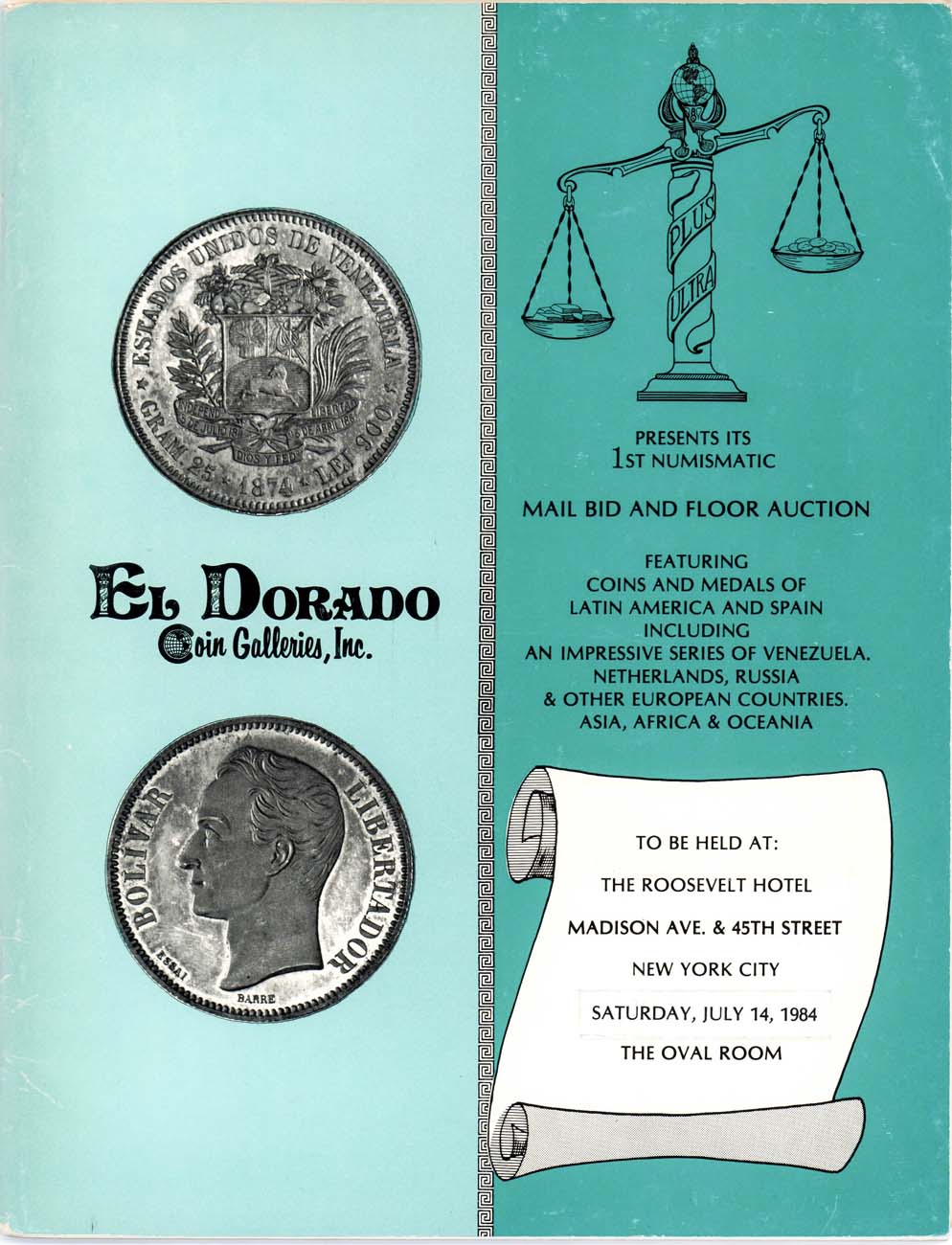Нью-Йорк, 14 июля 1984 года. 830 лотов. Представлены монеты стран мира, около половины аукциона - монеты Америки и Испании. Русские монеты и медали - 136 лотов. Большая и важная коллекция русских серебряных монет. В том числе монеты Петра I, два "семейных рубля" 1836 года (один - с подписью "РП Уткин", а второй (исключительно редкий) без букв), 5 рублей 1846 года "MW" в исполнении proof.