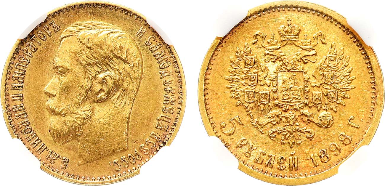 Золото. Аверс: штемпель 1898 года (портрет рельефный, ободок узкий). Уздеников 0329. Биткин 20. Казаков 109. MS 61.