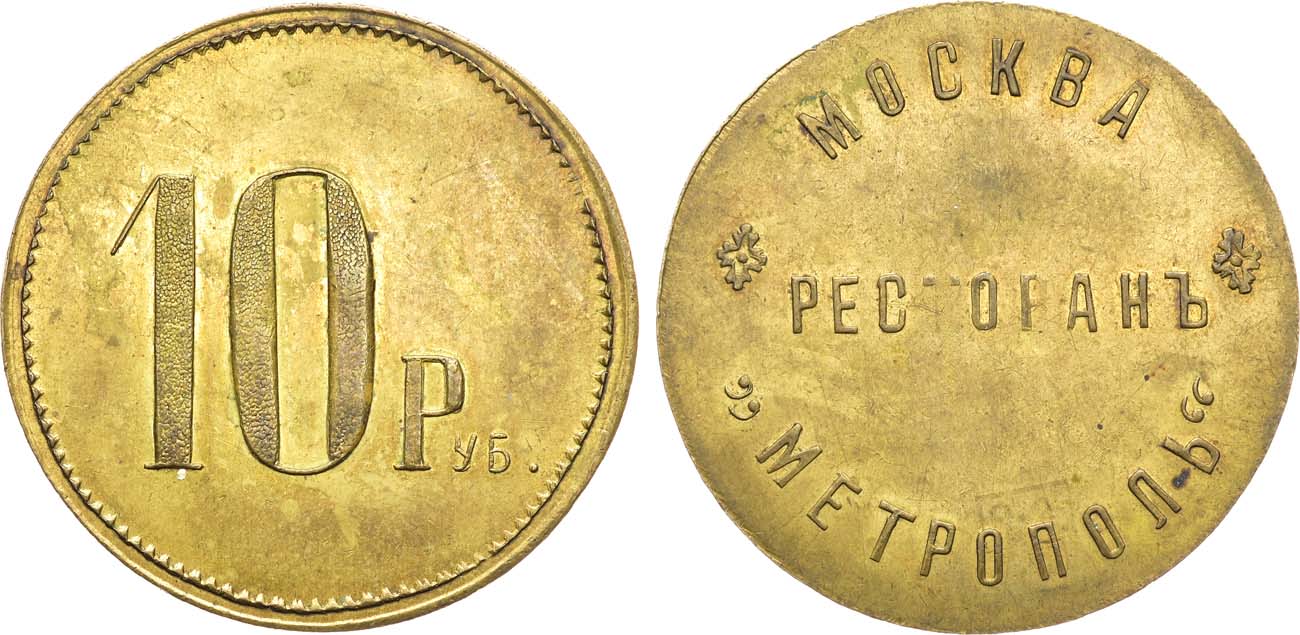 Подобные жетоны использовались для внутренних расчетов между официантами (половыми), кухней и буфетом в некоторых ресторанах, трактирах и кофейнях России на рубеже XIX-XX вв.