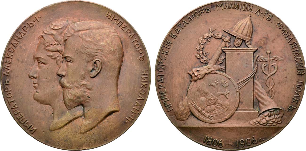 Лейб-гвардии Финляндский полк был сформирован в декабре 1806 года в Стрельне из крестьян окрестных императорских вотчин как батальон милиции (ополчения). Создавался под покровительством Великого князя Константина Павловича. Батальон состоял из одной гренадерской, четырех мушкетёрских рот и артиллерийской полуроты. 10 декабря 1806 года командиром батальона был назначен подполковник А. А. Трощинский. Артиллерийская рота батальона имела на своём вооружении 6 орудий: четыре 6-фунтовые пушки и два 12-фунтовых единорога. Артиллерийская рота состояла из 114 рядовых артиллеристов при 12 унтер-офицерах с 2 музыкантами. Командовали ротой три офицера. Командир роты поручик Захаров, Ростислав Иванович, подпоручик Палицын, Михаил Яковлевич и прапорщик Митьков, Михаил Фотиевич. 10 февраля 1807 года в Стрельне прошёл смотр и проверка боевой готовности батальона и через несколько дней Императорский батальон милиции был выдвинут в Ригу.
