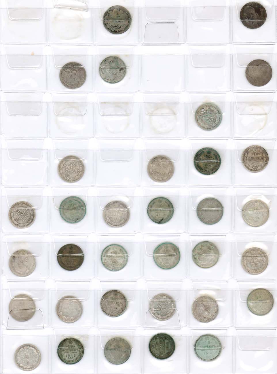 Серебро. 15 копеек 1861, 15 копеек 1862, 15 копеек 1863, 15 копеек 1864, 15 копеек 1867, 15 копеек 1870, 15 копеек 1874, 15 копеек 1876, 15 копеек 1879, 15 копеек 1899, 15 копеек 1900, 15 копеек 1901, 15 копеек 1902, 15 копеек 1903, 15 копеек 1904, 15 копеек 1905, 15 копеек 1906, 15 копеек 1907, 15 копеек 1908, 15 копеек 1909, 15 копеек 1911, 15 копеек 1912, 15 копеек 1913, 15 копеек 1914, 15 копеек 1915, 15 копеек 1916, гривенник 1796, 10 копеек 1815 2 экз., 10 копеек 1822, 10 копеек 1847, 10 копеек 1855, 10 копеек 1861, 10 копеек 1867, 10 копеек 1868, 10 копеек 1870, 10 копеек 1871, 10 копеек 1880, 10 копеек 1889, 10 копеек 1890, 10 копеек 1898, 10 копеек 1899, 10 копеек 1900, 10 копеек 1901, 10 копеек 1902, 10 копеек 1903, 10 копеек 1904, 10 копеек 1905, 10 копеек 1906, 10 копеек 1907, 10 копеек 1908, 10 копеек 1908, 10 копеек 1909, 10 копеек 1910, 10 копеек 1911, 10 копеек 1912, 10 копеек 1913, 10 копеек 1914, 10 копеек 1915, 10 копеек 1916, 5 копеек 1813, 5 копеек 1815, 5 копеек1822, 5 копеек 1823, 5 копеек 1834, 5 копеек 1890, 5 копеек 1891, 5 копеек 1892, 5 копеек 1893, 5 копеек 1897, 5 копеек 1900, 5 копеек 1901, 5 копеек 1903, 5 копеек 1909, 5 копеек 1910. G-AU.