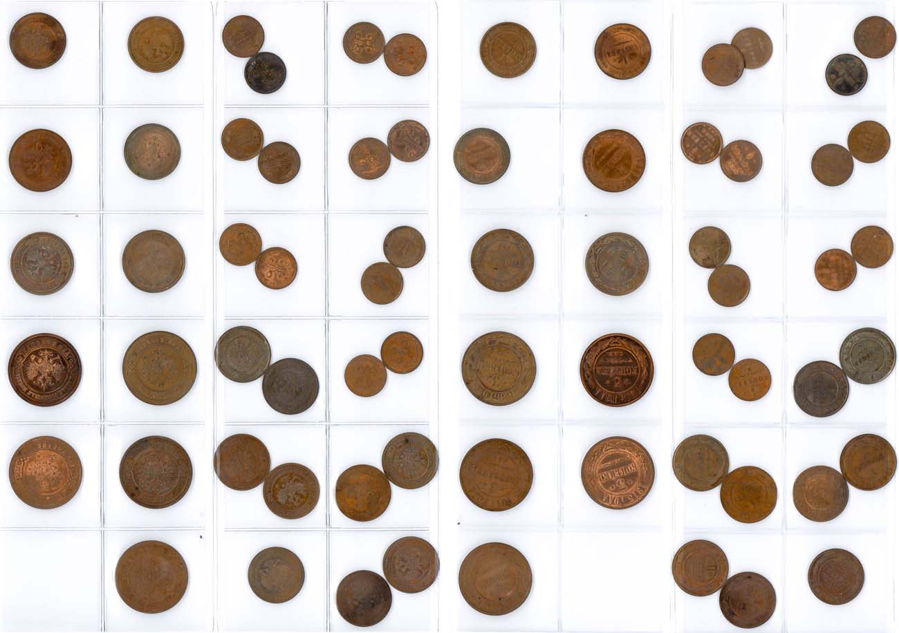 Медь. 3 копейки 1883 СПБ, 3 копейки 1913 СПБ, 3 копейки 1914 СПБ, 3 копейки 1915, 3 копейки 1916, 2 копейки 1914 СПБ, 2 копейки 1915, 2 копейки 1916, 1 копейка 1887 СПБ, 1 копейка 1894 СПБ, 1 копейка 1898 СПБ, 1 копейка 1903 СПБ, 1 копейка 1904 СПБ, 1 копейка 1906 СПБ, 1 копейка 1908 СПБ, 1 копейка 1909 СПБ, 1 копейка 1911 СПБ, 1 копейка 1912 СПБ, 1 копейка 1914 СПБ, 1 копейка 1915, 1/2 копейки 1885 СПБ, 1/2 копейки 1889 СПБ, 1/2 копейки 1898 СПБ 2 экз., 1/2 копейки 1899 СПБ, 1/2 копейки 1900 СПБ, 1/2 копейки 1909 СПБ, 1/2 копейки 1910 СПБ, 1/2 копейки 1911 СПБ, 1/2 копейки 1912 СПБ 2 экз., 1/2 копейки 1913 СПБ, 1/2 копейки 1914 СПБ, 1/2 копейки 1915. AU-UNC.