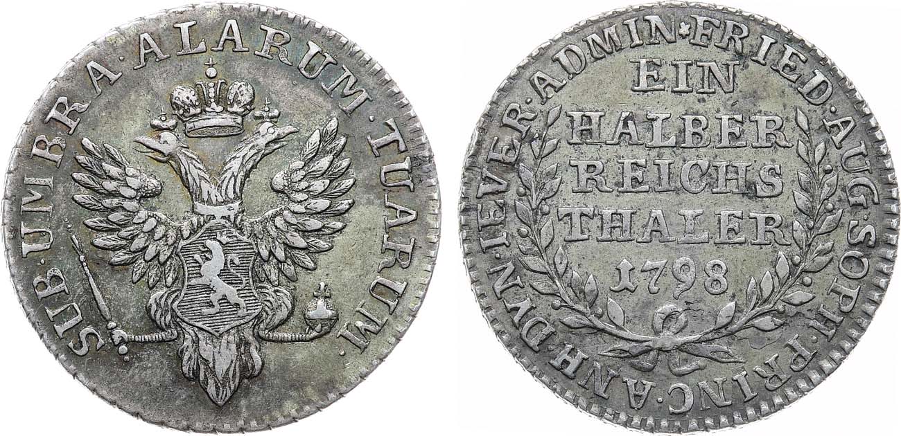 Серебро. 11г. Монетный двор в Зильберхютте. Монета чеканена в княжестве Йевер по специальному разрешению Павла I, имевшего титул князя Йеверского. Уздеников 4924(∸). Биткин 2(R1). XF.