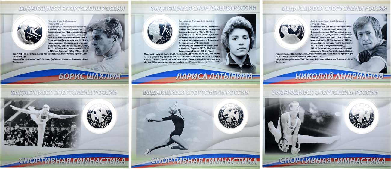 Серебро. 2 рубля 2014 ММД Николай Андрианов ЦБ РФ 5110-0134, 2 рубля 2014 ММД Лариса Латынина ЦБ РФ 5110-0135, 2 рубля 2014 ММД ЦБ РФ 5110-0136. PROOF.