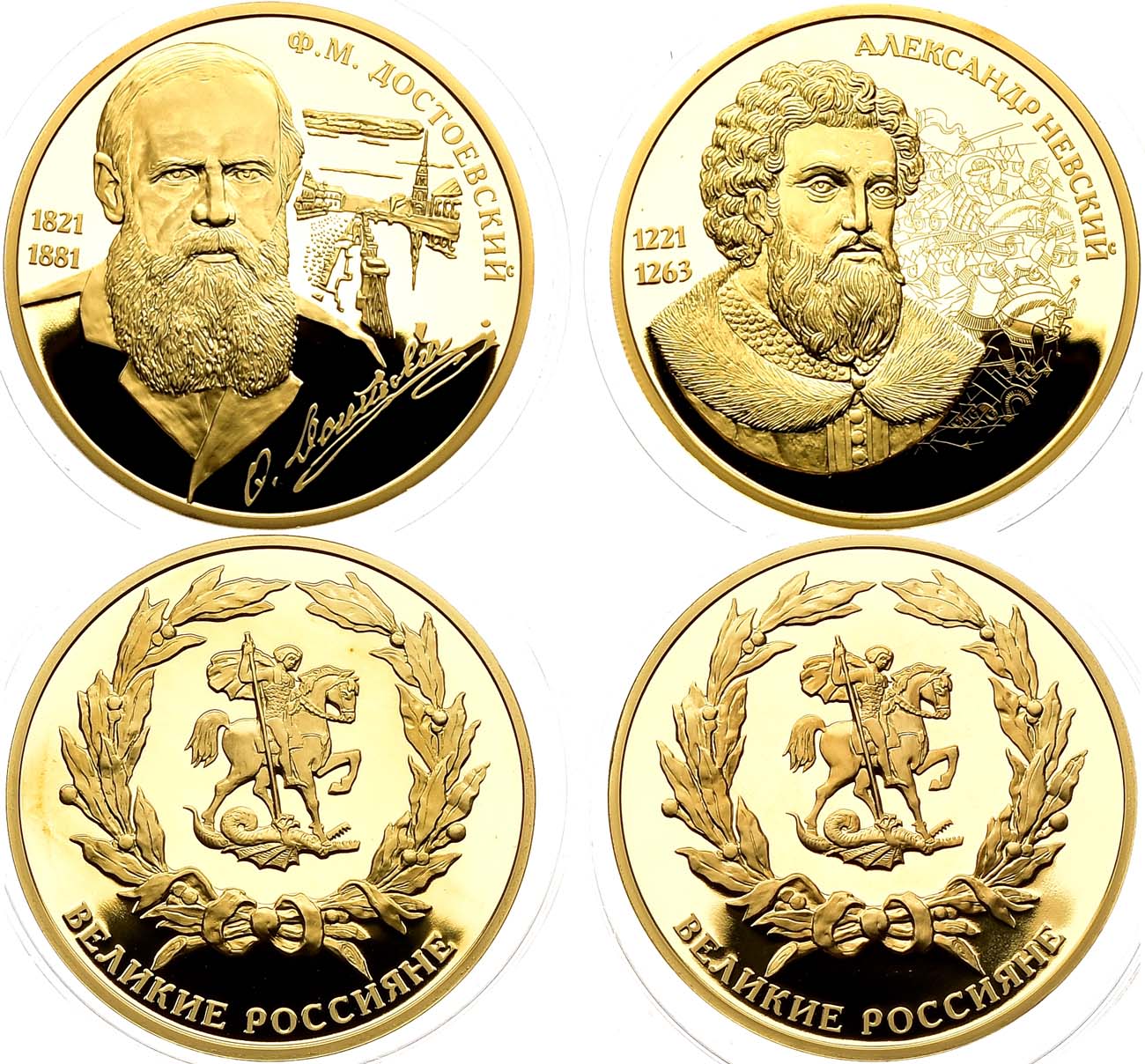 Томпак, золочение. 26г. Жетон 2015 года. Ф.М. Достоевский. Диаметр 38,61 мм. Золочение 999 пробы. Изготовитель "Народная Казна". В пластиковой капсуле. Жетон 2015 года. Александр Невский. Диаметр 38,61 мм. Золочение 999 пробы. Изготовитель "Народная Казна". В пластиковой капсуле. PROOF-LIKE.