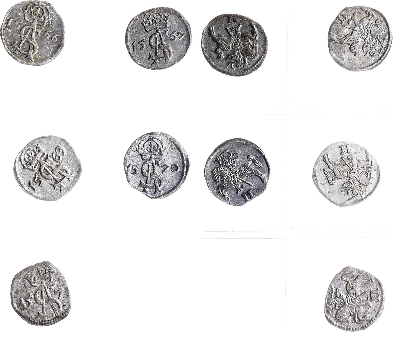 Серебро. 2 денария 1566, 1567, 1569, 1570, 1570 гг AU/UNC.