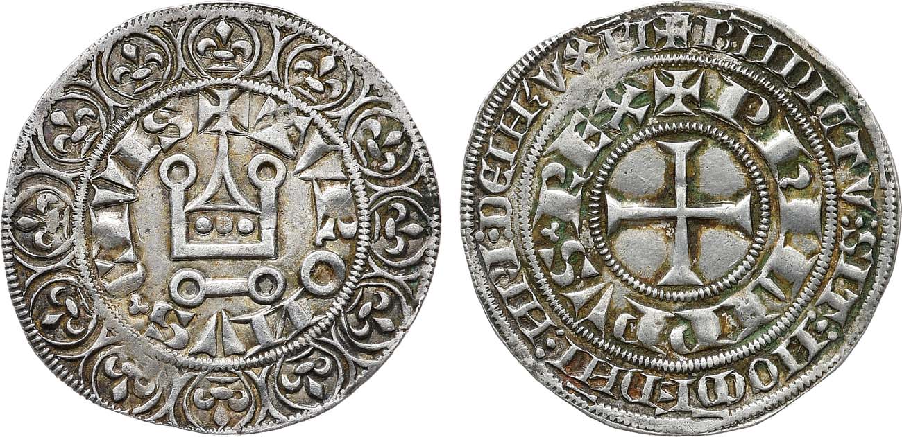 Серебро. 4,03г. Аверс: круговая легенда "PHILIPPUS REX". Реверс: круговая легенда "TVRONVS CIVIS". XF/AU.