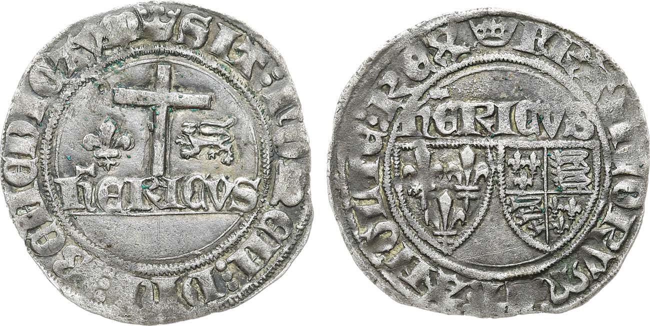 Серебро. 3,13г. Париж. Аверс: Гербы Франции и Англии над ними имя короля "hericvs", в круговой легенде, разделенная знаком монетного двора - короной. Реверс: Символы Франции и Англии -лилия и леопард, между ними крест, под ними имя короля "hericvs", в круговой легенде, разделенная знаком монетного двора - короной. XF.