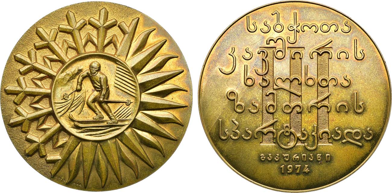 Томпак, золочение. 104,67г. Диметр 60 мм. Московский монетный двор. Медальер В.Р. (на аверсе внизу "В.Р.-74 ММД"). UNC.
