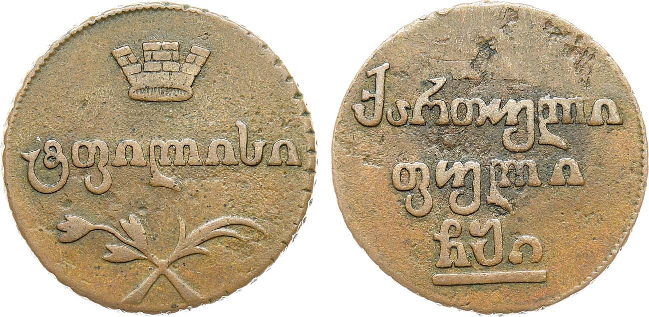 Медь. 7,76г. Для Грузии. Тифлисский монетный двор. Тираж: 50.200 экз. Уздеников 4385. Биткин 796(R1). 1 рубль 50 копеек по Петрову. 1 рубль по Ильину. VF+.