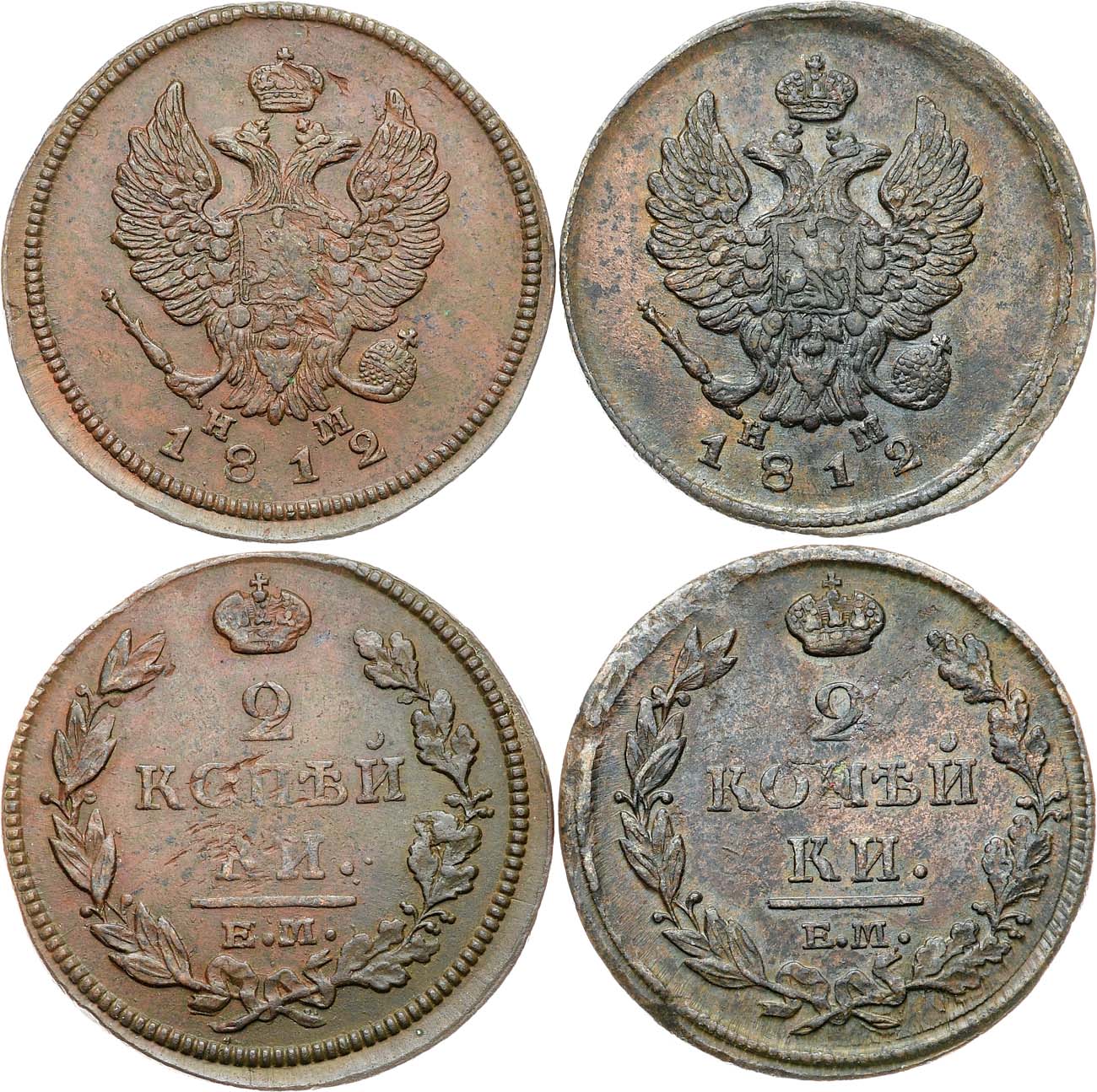 Медь. 2 копейки 1812 г. ЕМ-НМ. 11,75г. UNC. 2 копейки 1812 г. ЕМ-НМ. 14,13г. UNC.