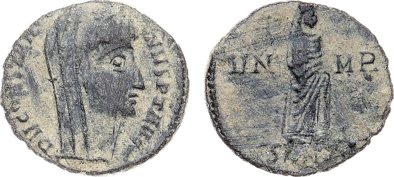 Император Константин I Великий умер 22 мая 337 года. После его смерти на территориях, управляемых его двумя старшими сыновьями Константином II и Констанцием II, был предпринят выпуск памятных монет, на которых почивший император изображался как "божественный Константин" ("Divus Constantinus"). Языческая практика причисления умершего правителя к богам, казалось бы, стала неуместной в свете крещения Константина и христианизации Империи. В действительности, это был последний отголосок прекращавшейся старой традиции. Младший сын Константина, Констант I, наиболее последовательный христианин из новых императоров (был единственным из братьев, кто принял крещение в 337 году), уже не следовал старой практике обожествления умершего императора и не выпускал на подконтрольных ему монетных дворах монет с подобным сюжетом.