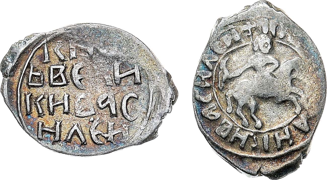 Серебро. 0,76г. Чеканка в Москве. Аверс: строчная легенда в сплошном ободке. Реверс: сокольник на лошади вправо; круговая легенда. ГП2 1510J (R-VI). AU.