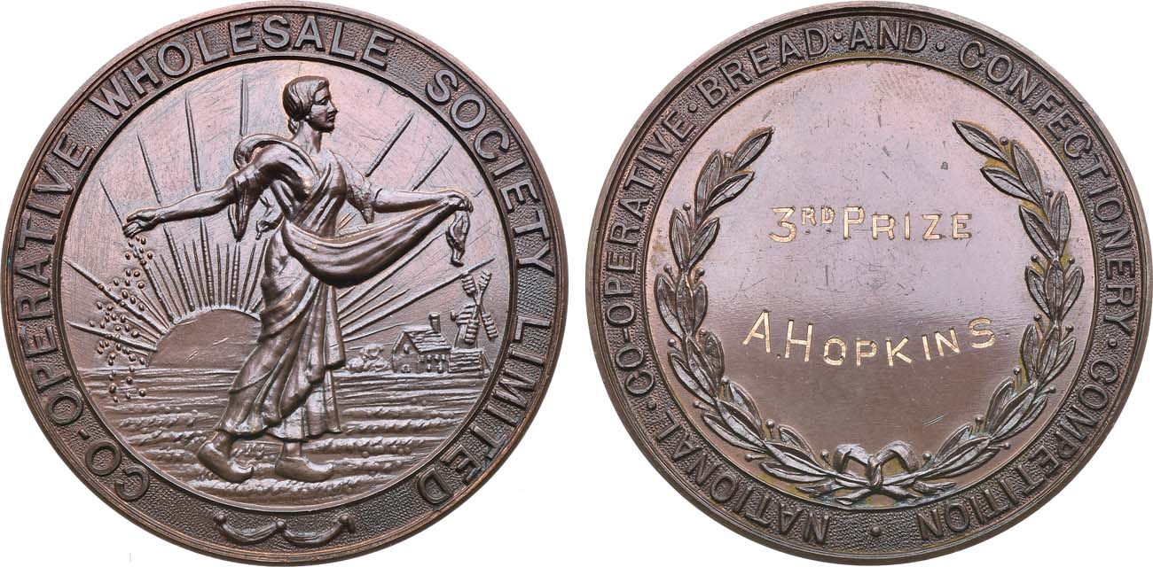 Бронза. 68,35г. Диаметр 51 мм. На реверсе гравировка "3rd Prize / A.Hopkins". UNC.