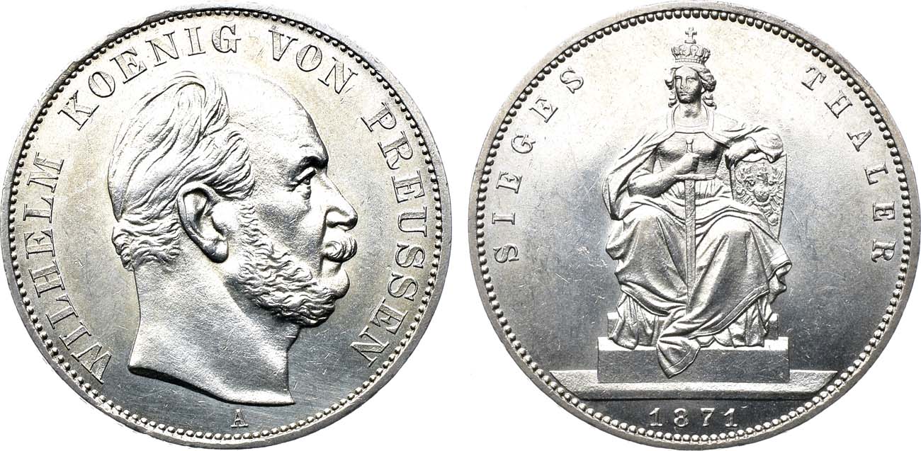 Серебро. 18,51г. Берлин (А). Тираж: 880000 экз. Отчеканена в честь победы во Франко-Прусской войне. KM 500. AKS 118. Davenport 785. Jaeger 99. UNC.