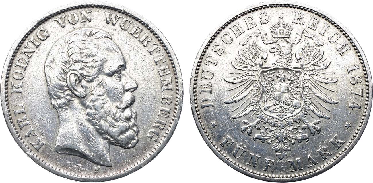 Серебро. 27,62г. Штутгарт (F). Тираж 113.000 экз. Старогербовка. KM 623. Jaeger 173. Weege 169.. XF-.