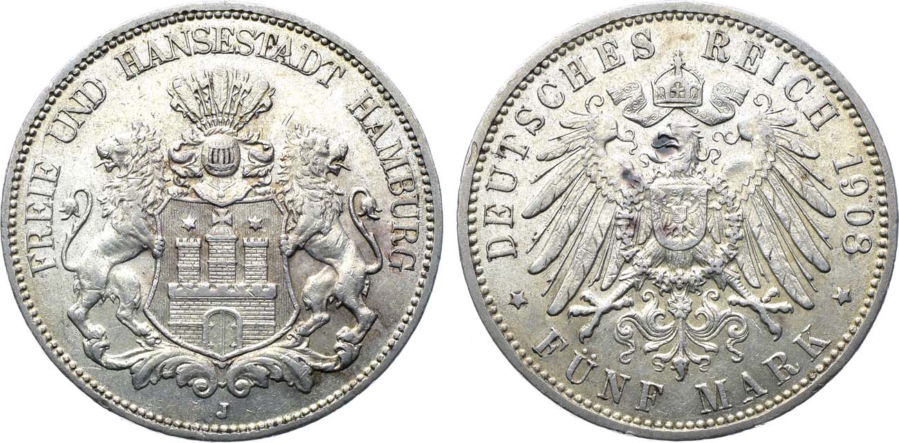 Серебро. 27,84г. Гамбург (J). Тираж 457.794 экз. KM 610. Jaeger 65. Weege 65. XF/AU.