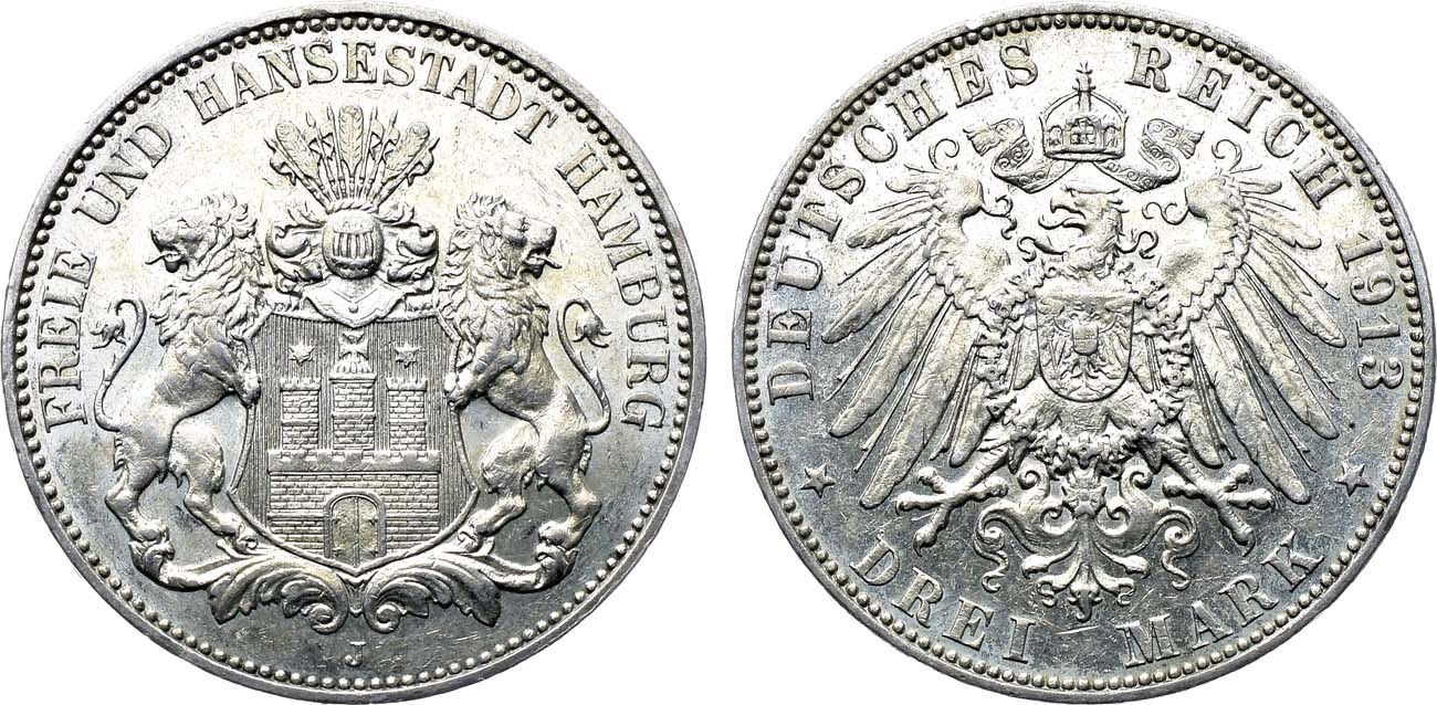 Серебро. 16,72г. Гамбург (J). Тираж 343200 экз. KM 620. Jaeger 64. Weege 63.. AU.