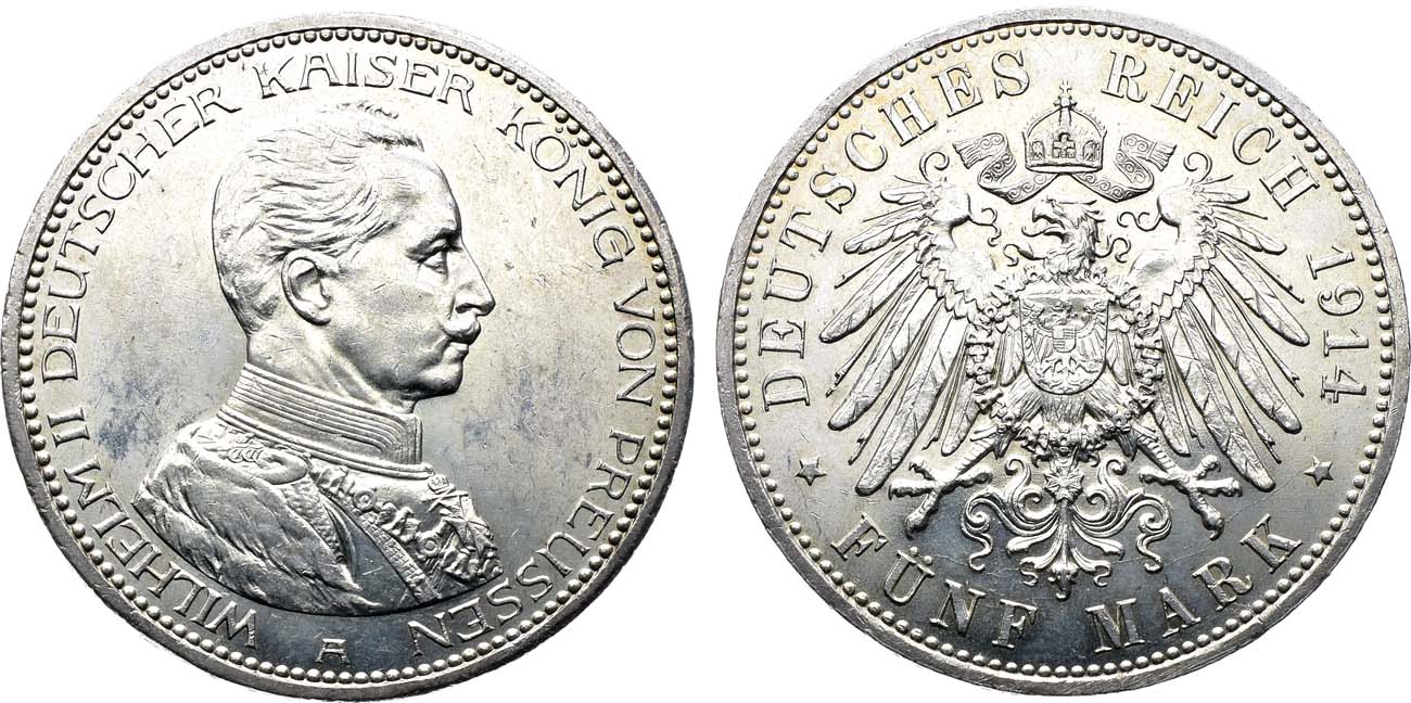 Серебро. 27,8г. Берлин (А). Портрет в военной форме (мундир). KM 536. Jaeger 114. Weege 114.. UNC.