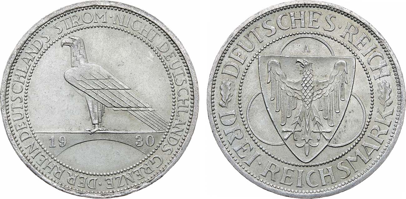 Серебро. 15,06г. Берлин (А). Отчеканена в память освобождения Рейнской области (Рейнланда). KM 70. Jaeger 345. Weege 46. UNC.
