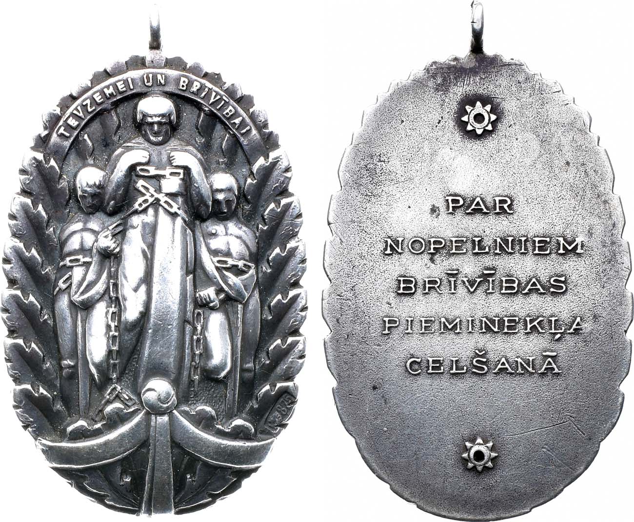 Серебро 875 проба. 13,66г. Размер 26.5х44 мм. Орденская фабрика "Vilhelms Fridrichs Müller", 1930-е. Аверс: справа внизу клеймо: "голова в кокошнике влево и пробирное клеймо 875". Клеймо на кольце "F.M.". AU.