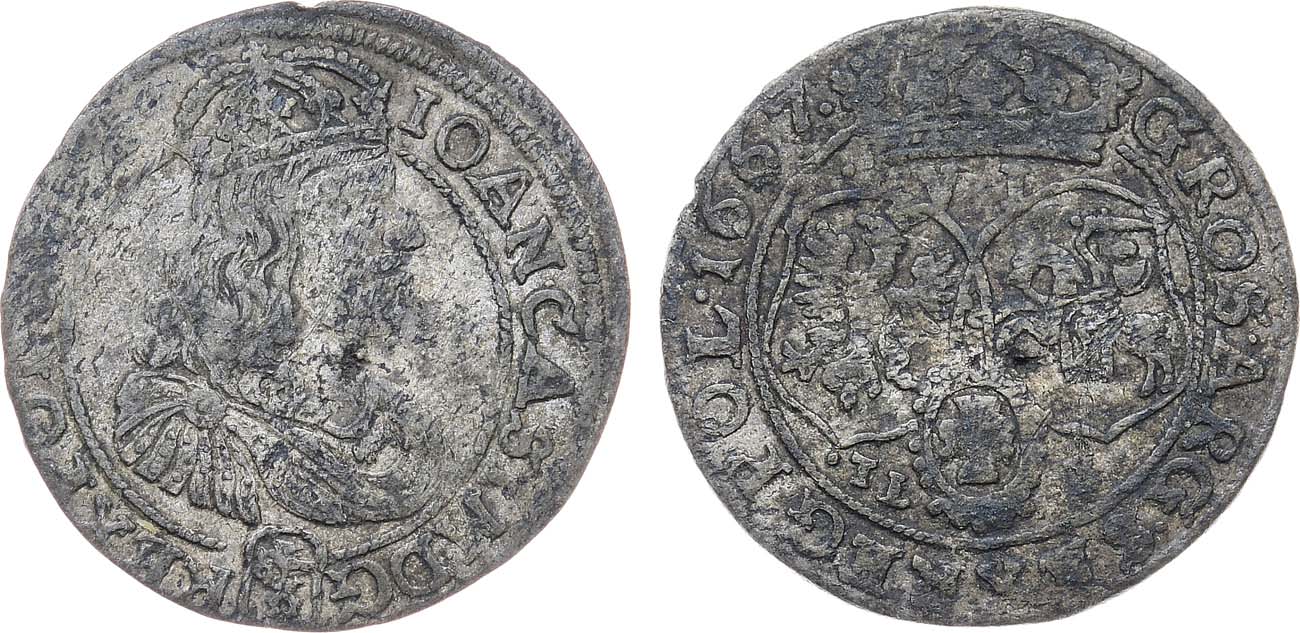 Серебро. 2,84г. Быдгош (TLB). Аверс: "IOAN CAS D G RE X POL & S M D". Реверс: "GROS ARG SEX REG POL 1667". Kopicki 1688(R). VF.