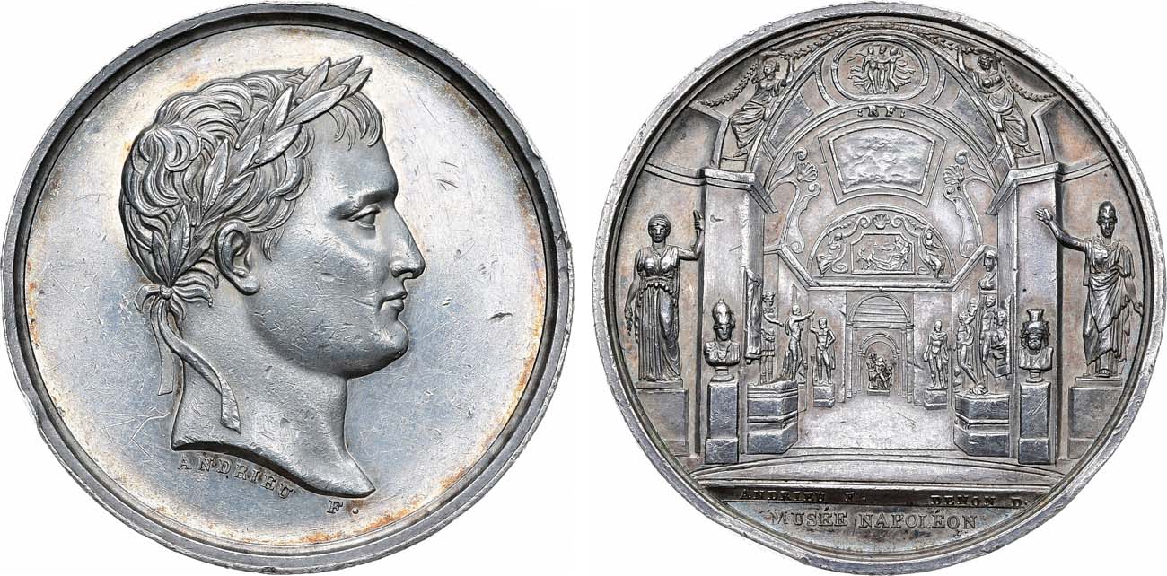 Серебро. 20,62г. Диаметр 34,2 мм. Парижский монетный двор. Медальер Б. Андриё (на аверсе под портретом "ANDRIEU F."; на реверсе в обрезе изображения "ANDRIEU F."). Bramsen 368. AU.